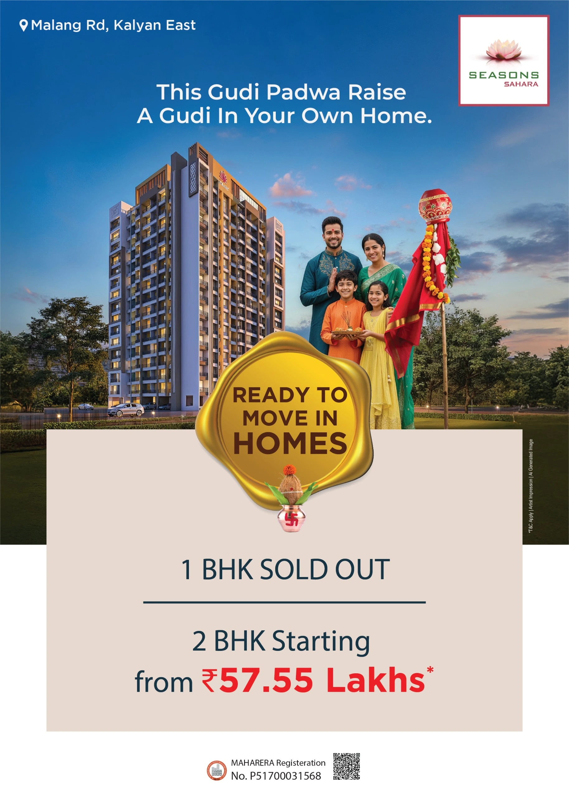 Tucked away in the thriving heart of Kalyan, Seasons Sahara is where modern living meets timeless tranquility. Set in a well-connected yet peaceful locale, the project offers the rare balance of city convenience and serene comfort.